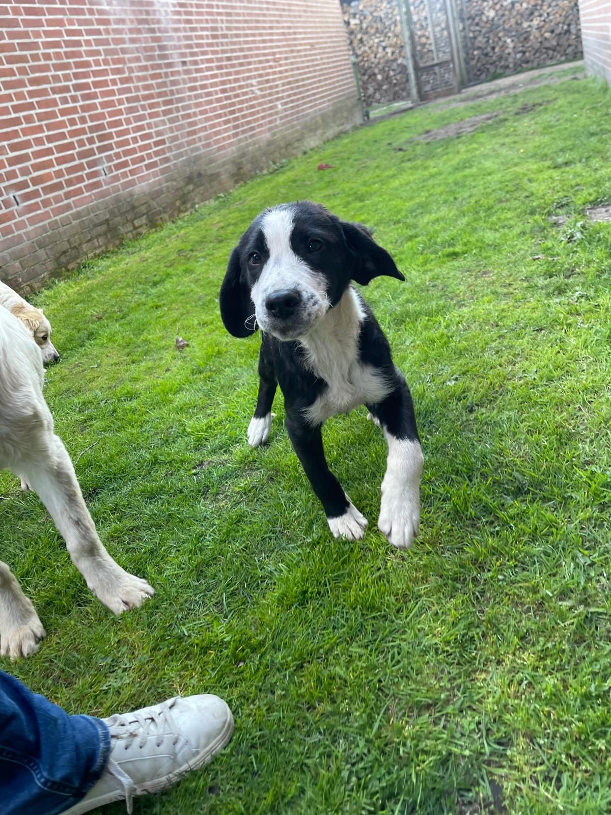 De geboortedatum van Jumbo is door de dierenarts geschat op 10 november 2025. Hij heeft nu een schofthoogte van 38 cm. Hij zal natuurlijk nog wat doorgroeien, maar een heel grote hond gaat hij niet worden, zal eerder een middenmaat blijven, is de inschatting op basis van zijn bouw en geschatte leeftijd.
